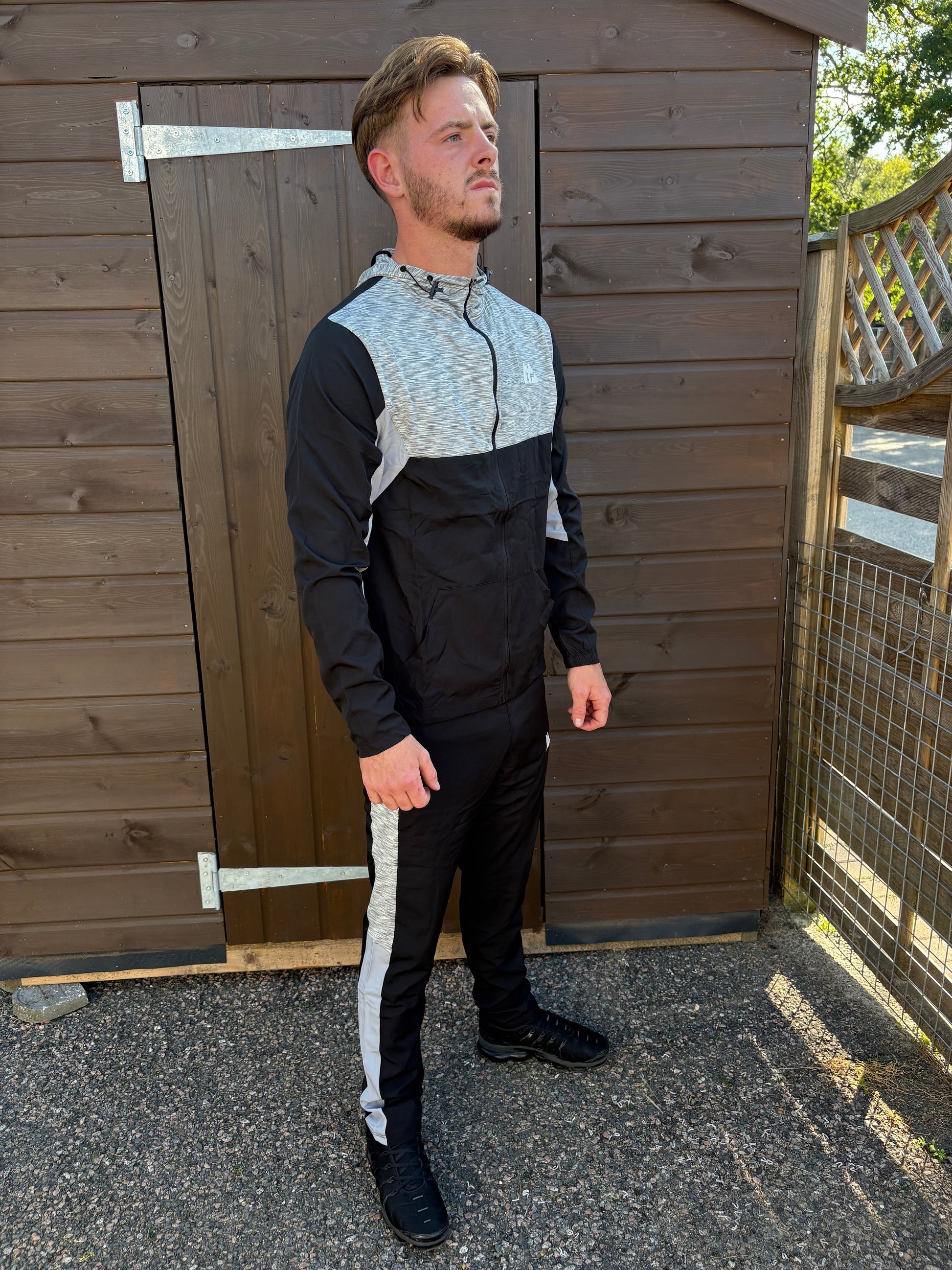 MNTRX Two-Tone Panel Tracksuit – Black & Grey
